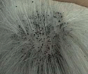 | The many black specks seen on this cat’s back are flea dirt. |